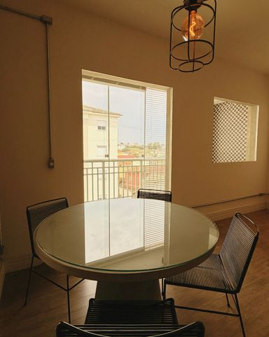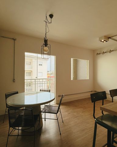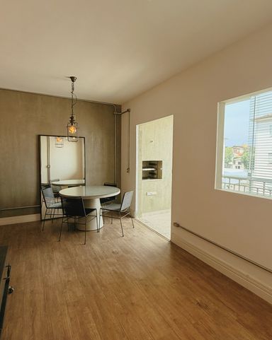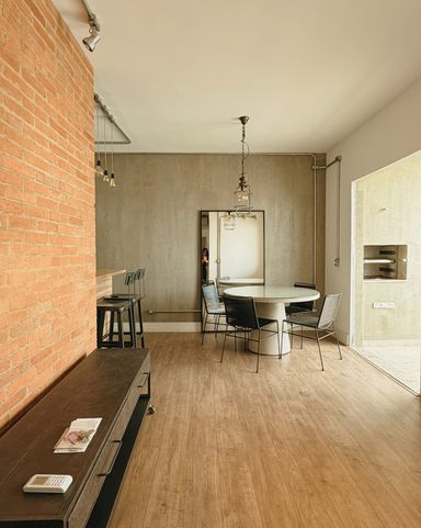 Sala de estar e jantar integradas.