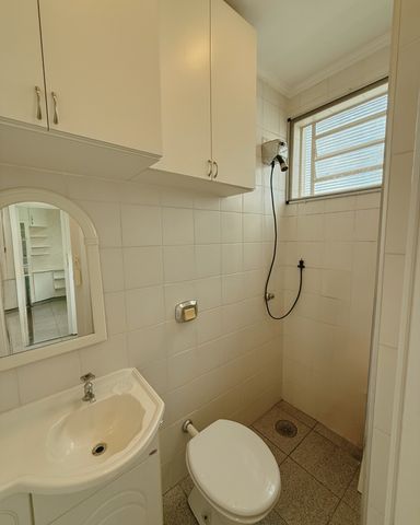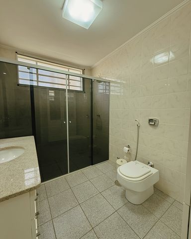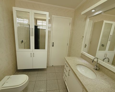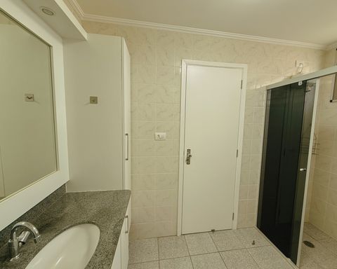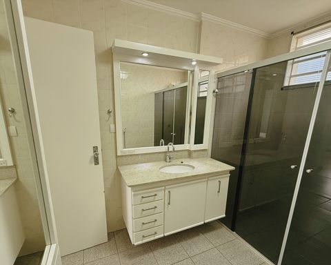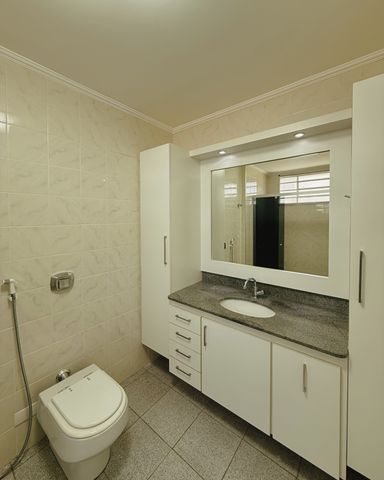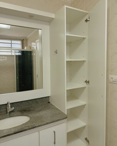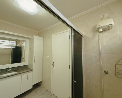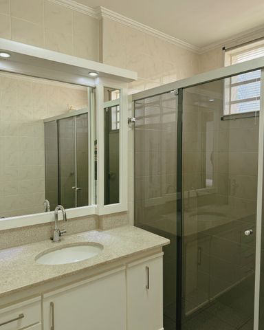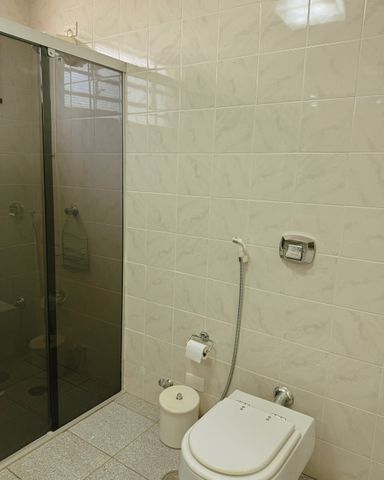 - Banheiro social, com gabinete armário e box blindex