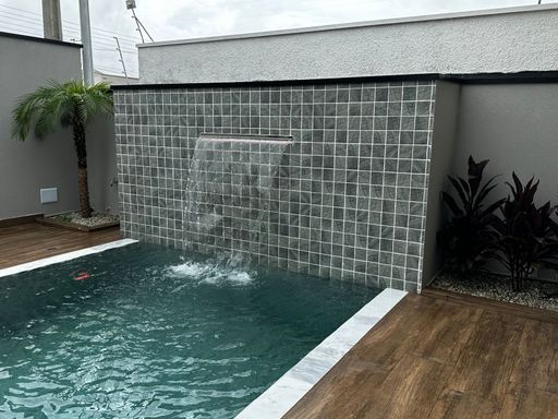 ▪️ Lazer com piscina aquecida, cascata e ducha