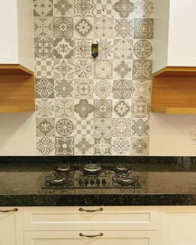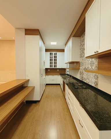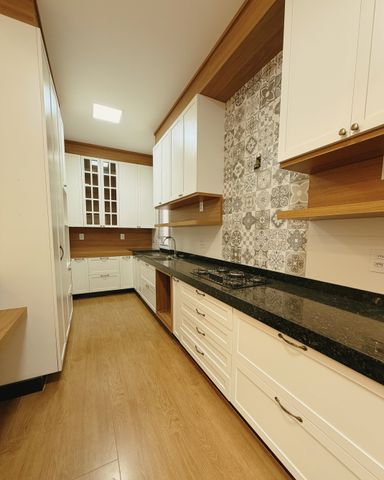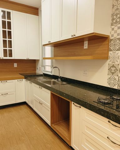 ▪️ Cozinha com pia em granito, cooktop e armários planejados