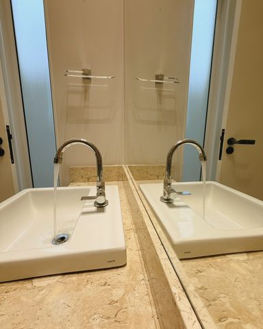 ▪️ Banheiros com espelhos, gabinetes e box blindex