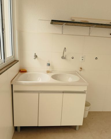 ▪️ Banheiro social, com gabinete, espelho e box blindex