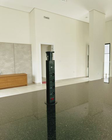 ▪️ Bancada da cozinha em granito com torre de tomadas