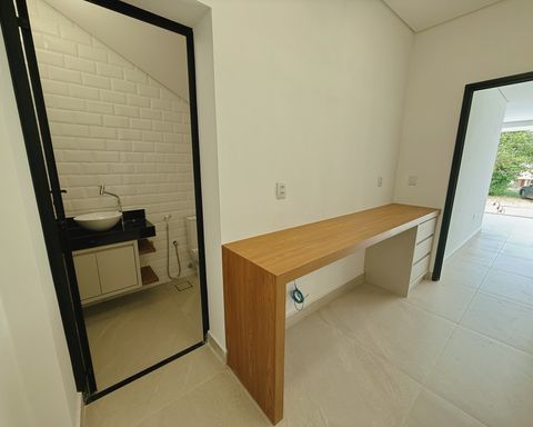 ▪️ Escritório com bancada de trabalho e banheiro