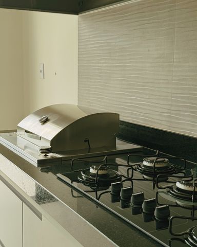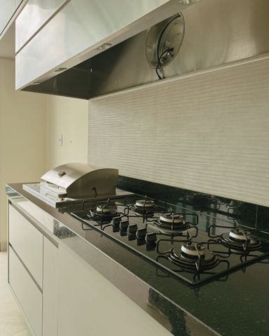▪️ Churrasqueira a gás e cooktop com coifa em inox