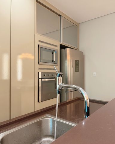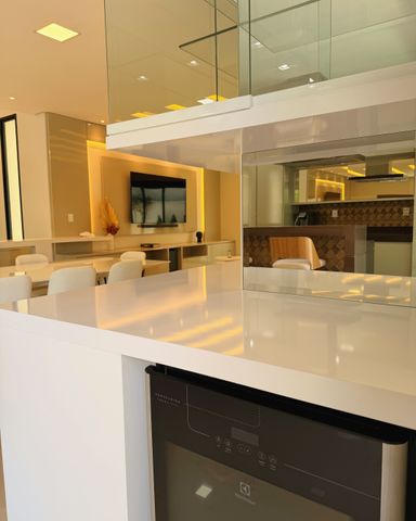 ▪️ Cozinha com cooktop, coifa, geladeira, lava louças, micro-ondas e forno elétrico