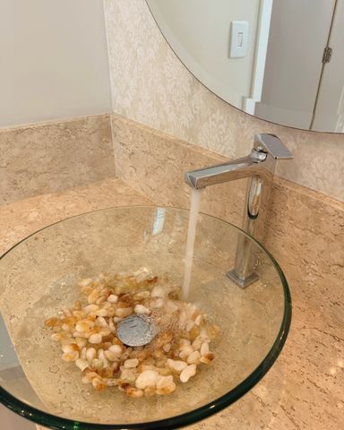 ▪️ Banheiros com pia esculpida, espelhos, gabinetes e box blindex