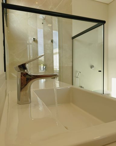 ▪️ Banheiros com espelhos, gabinetes e box blindex